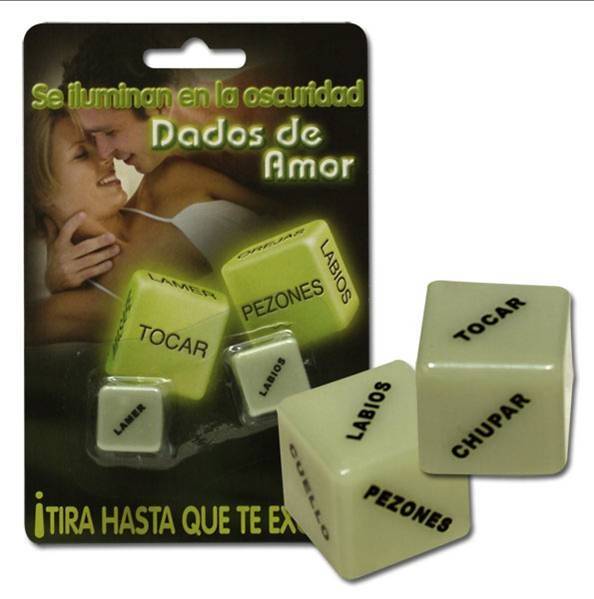 - Un dado contiene las partes del cuerpo y el otro los verbos eróticos