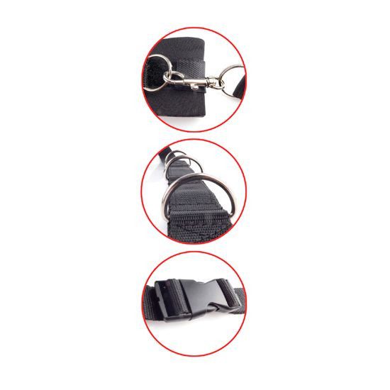 FETISH FANTASY ULTIMATE BED RESTRAINT SYSTEM, es un kit de bondage para utilizar en la cama, de la colección FETISH FANTASY SERIES. Transforma tu cama en una apasionante con zona de juegos. Este sistema fácil de instalar es todo lo que necesitas para disfrutar de una noche de fetiche y diversión en tu propia habitación, con tu propia cama! Siempre has soñado con ser atado a los postes de la cama, pero ¿qué hacer si tu cama no tiene ninguno? Este sistema ofrece dos grandes correas de nylon que se envuelven alrededor de tu cabecero y el pie, y se conecta con 4 correas y esposas. Cada correa cuenta con 6 anillos de metal que te permiten colocar las ataduras en cualquier lugar que desees, creando escenarios elaborados sin nudos ni complicaciones. El kit puede ser utilizado con cualquier tamaño de colchón y se adapta fácilmente en minutos. Es perfecto para las camas sin cabeceros y se puede utilizar en los sofás también. Simplemente desliza la correa de tu cabecera, tira de la correa hasta que quede apretado, a continuación cierra la pinza de autobloqueo para mantener la correa en su lugar. Repite los mismos pasos con el pie de cama y ya estáis listos para disfrutar de una noche de juegos bondage. Las esposas se ajustan fácilmente para adaptarse a las muñecas o los tobillos, lo que te permite explorar nuevas posiciones que nunca pensaste que fueran posible. Usa tu imaginación y no le pongas límite a la diversión! Incluye máscara de regalo. 100% Ajustable.