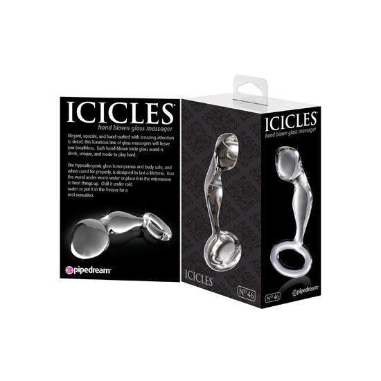 ICICLES NUMBER 43 CLEAR. Perfecto para el juego anal, este tapón de vidrio de lujo cuenta con una punta cónica para facilitar la inserción, las bombillas que proporcionan sensación extra, y un cuello estrecho que permite que sus músculos se envuelven y sostienen plug. Hábilmente curvado para la estimulación P-punto, este plug garantíza los orgasmos más explosivos. El anillo en la base asegura no lo puedo resbalar demasiado en el interior, y ofrece una extracción segura y fácil. El vidrio es hipoalergénico y seguro para el cuerpo, y siempre que se use adecuadamente durará toda la vida. Recomendamos mojarlo con agua tibia o ponerlo en el microondas para una sensación más cálida. También puedes enfriarlo con agua fría o ponerlo en el congelador para una sensación de frescor. Ya que el vidrio no es poroso, su limpieza es muy fácil. Usa el limpiador Pipedream Toy Cleaner.
