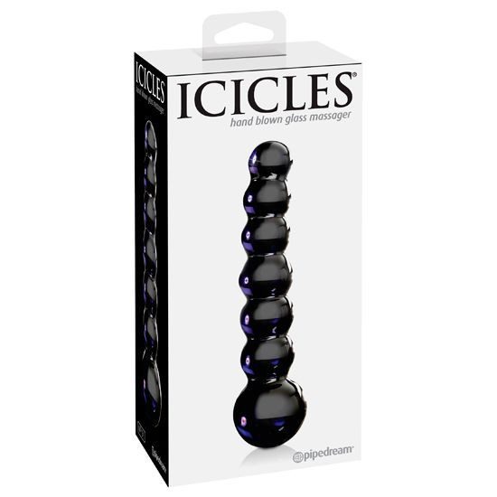 ICICLES NUMBER 51 HAND BLOWN GLASS MASSAGER. Elegante y cuidado en cada detalle, esta lujosa línea de masajeadores de vidrio te dejará sin aliento. Cada varita del carámbano de vidrio soplado a mano es elegante, única, y hecho para jugar duro. Este elegante varita de cristal cuenta con un eje de cuentas en el que el tamaño de cada cuenta se incrementa gradualmente, lo que le permite aliviar cómodamente en el tamaño. La rugosidad es perfecto para la penetración, así como un masaje externo erótico. El vidrio es hipoalergénico y seguro para el cuerpo, y siempre que se use adecuadamente durará toda la vida. Recomendamos mojarlo con agua tibia o ponerlo en el microondas para una sensación más cálida. También puedes enfriarlo con agua fría o ponerlo en el congelador para una sensación de frescor. Ya que el vidrio no es poroso, su limpieza es muy fácil. Usa el limpiador Pipedream Toy Cleaner y agua tibia, o incluso puedes meterlo en el lavavajillas para mayor comodidad después de la diversión. Medidas insertables: 12,5 x 3 cm