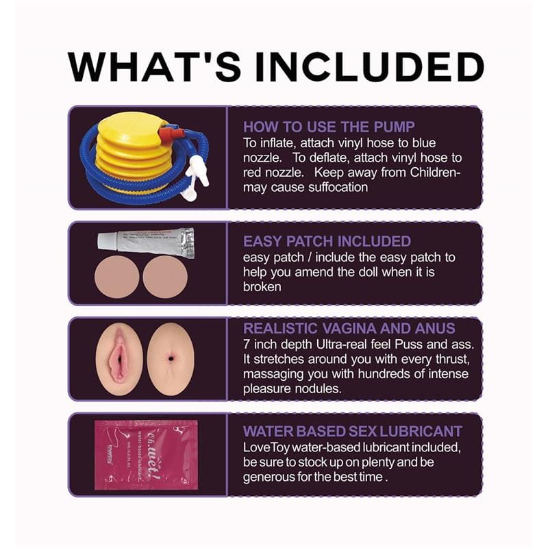 ¿Estás buscando una buena muñecas hinchable, de buena calidad pero asequible? Totalmente elaborada a partir del rostro de la actriz Victoria, cuenta con un par de voluptuosos pechos de silicona, con pezones de tacto real. Eso es sorprendente y diferente a otras muñecas inflables del mercado. Cuenta con una vagina y un culo realistas, fabricados de TPE, un material de sensación ultra real que hace que sus entradas sean increíbles. Recuerda utilizar tu lubricante a base de agua favorito y limpiarlo antes y después de cada uso.