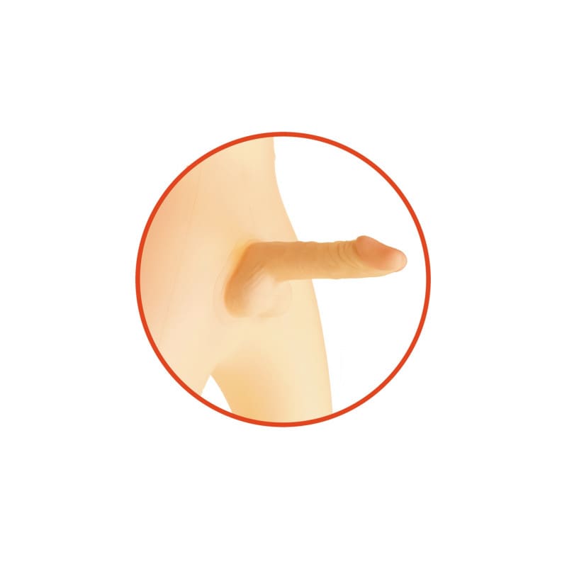 El pene realista tiene potentes vibraciones a tres velocidades. La muñeca tiene 1 agujero anal.