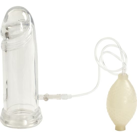 P3 PENIS PUMP CLEAR Bomba para el pene manejable con una sola mano, con un suave anillo de silicona para una cómoda sujeción. Con la garantia de DOC JOHNSON. Longitud: 21.5 cm Diámetro interior: 4.5 cm Diámetro exterior: 7 cm