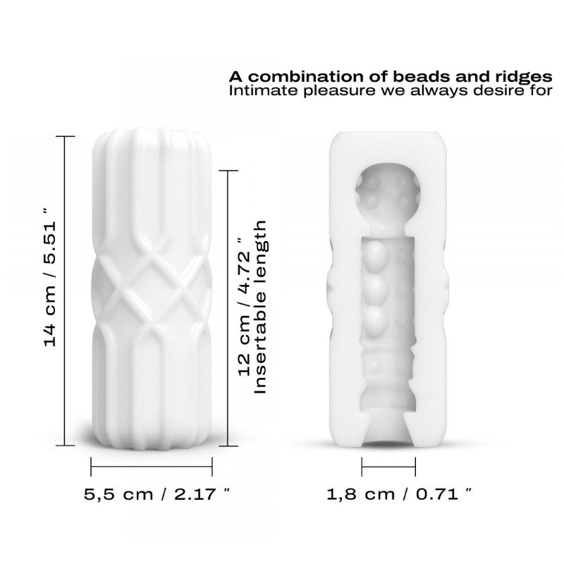 Masturbador tipo manga de alta calidad, modelo regular, con pinchos y círculos. Medidas insertables: 12,5 x 1,8 cm. Diámetro elástico y muy flexible y adaptable a todas las medidas.