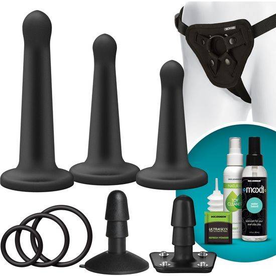 VACULOCK SILICONE PEGGING SET BLACK Kit Dual Density del sistema Vac-U-Lock. ¡No necesitarás nada más! Incluye: Arnés unisex ajustable hasta 175 cm. 3 anillos de distintos tamaños. Plug adaptador con broches de presión. Tapón con ventosa perfecto para usar sobre cualquier superfice lisa. Pene realístico : 18 x 4 cm Pene realístico: 15 x 4 cm Pene realístico: 13 x 4 cm 29 ml Easy-On / Easy-Off Vac-U-Powder. 5 g. ULTRASKYN Refresh Powder. 118 ml. Limpiador de juguetes natural. 118 ml. Lubricante base de agua.