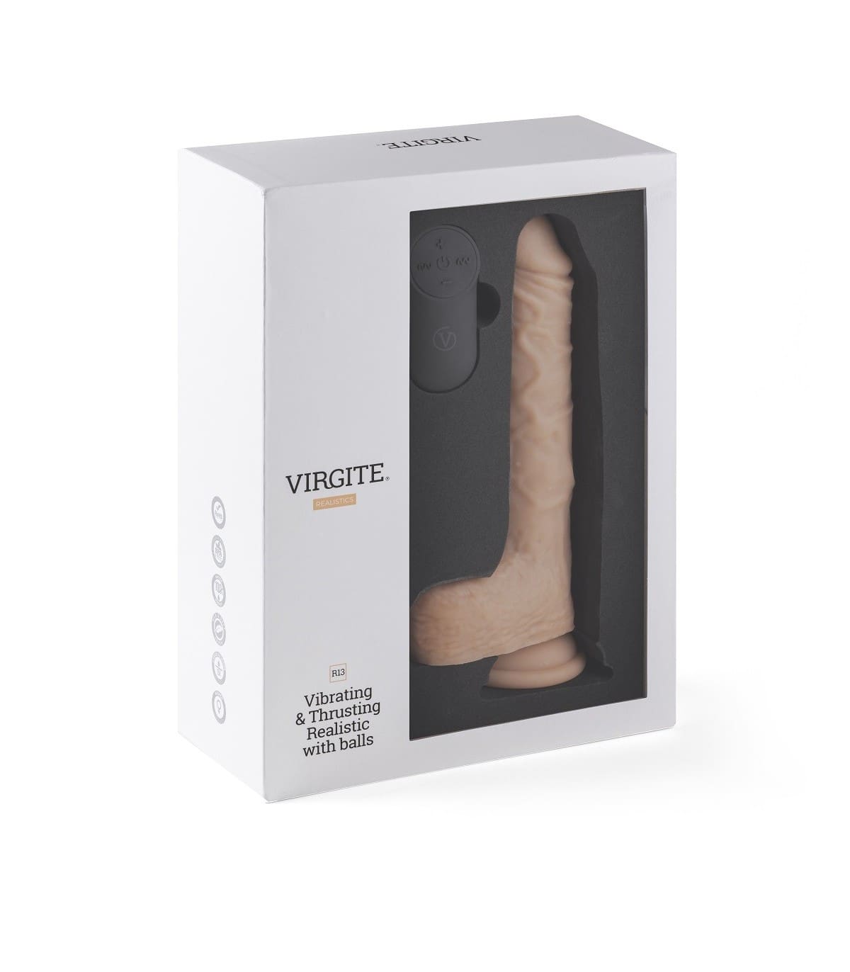 El vibrador realista con ventosa sube y baja es de Virgite, erotic things, es una marca registrada y diseñada en España fabricada con materiales de alta calidad. Está formada por diferentes lineas de productos que se irá ampliando para todo tipo de públicos.