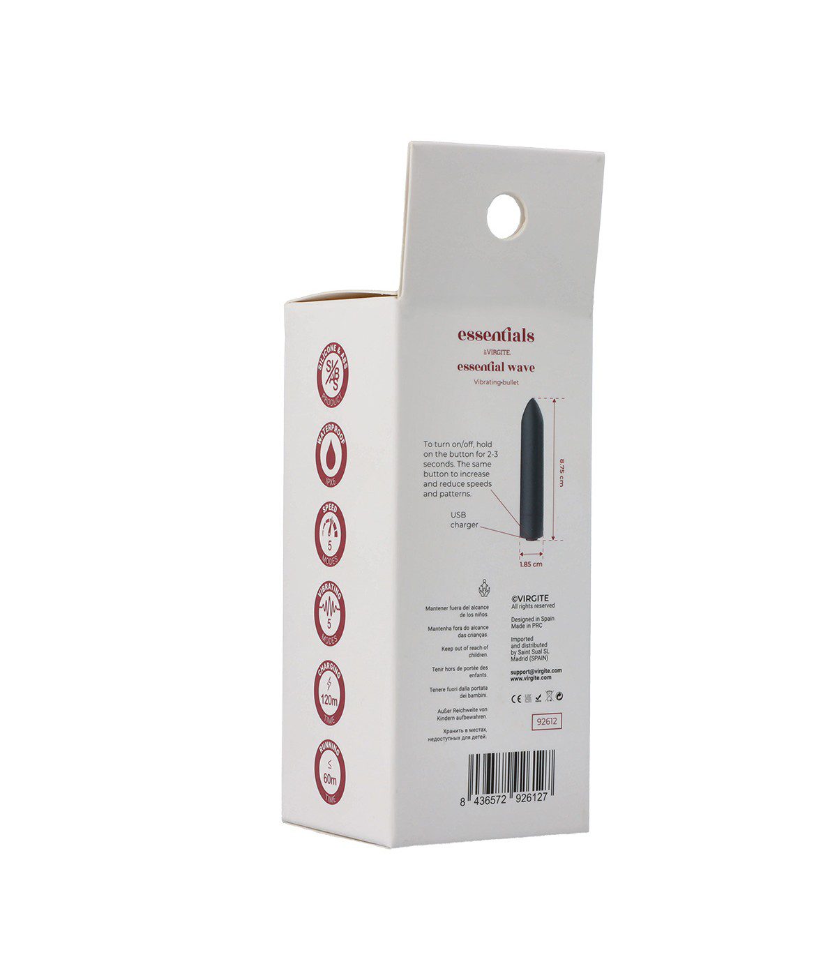 - 5 velocidades y 5 intensidades de vibración.